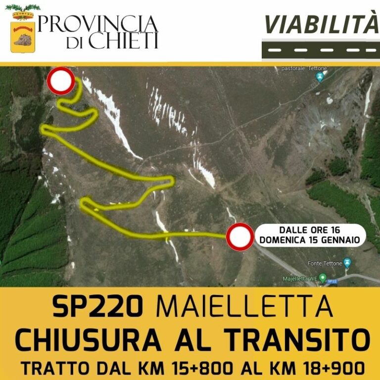 “Il tratto è stato interessato nell’estate 2022 dai lavori di messa in sicurezza appaltati dalla Provincia di Chieti per circa 400.000 euro con il rifacimento del manto stradale e l’installazione di moderni guardrail a tripla onda. Le scarse precipitazioni nevose e le temperature miti hanno consentito di procrastinare la chiusura invernale del tratto fino a questi giorni; in previsione delle nevicate e del calo delle temperature della prossima settimana è necessario procedere per le particolari criticità che si possono verificare su una strada di alta montagna come il tratto interessato dalla chiusura”, dichiara il Presidente Francesco Menna.