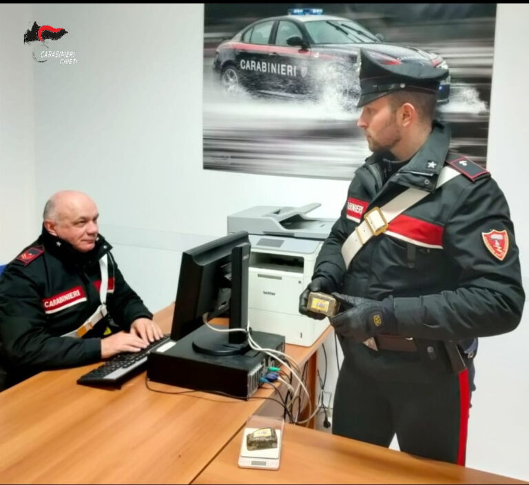 I militari operanti da alcuni giorni seguivano i movimenti sospetti dell’uomo, che si spostava per alcuni bar di Ortona dove scambiava fugaci conversazioni con alcuni giovani noti quali assuntori di stupefacenti.
