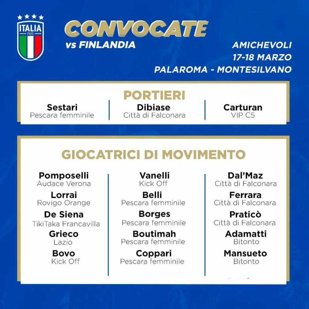 La magia dello sport unisce grandi e piccini sotto il caloroso abbraccio della condivisione, ornata di agonismo e sacrificio, che arde di passione e valori comuni. Certamente, non fa eccezione il calcio a 5 femminile: negli ultimi anni, la disciplina in rosa sembra aver ingranato la direzione del progresso per un maggiore, giacché equo, riconoscimento culturale agli occhi delle istituzioni e della società. Un piccolo passo per le donne, un grande passo per il mondo sportivo locale, ma guai ad accontentarsi troppo presto. Lo sa bene Rebecca De Siena, 22enne in forza al Tikitaka planet Francavilla e fresca di convocazione con la Nazionale italiana, la quale ha rilasciato un’intervista dopo le due sfide contro la Finlandia presso il Palaroma.