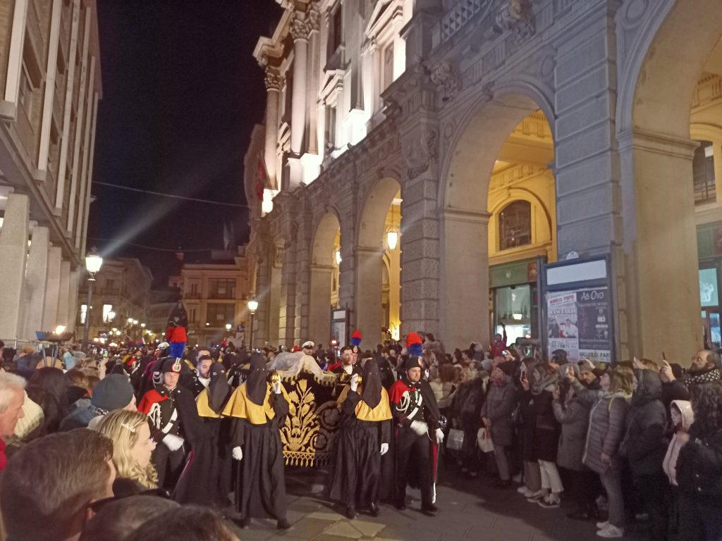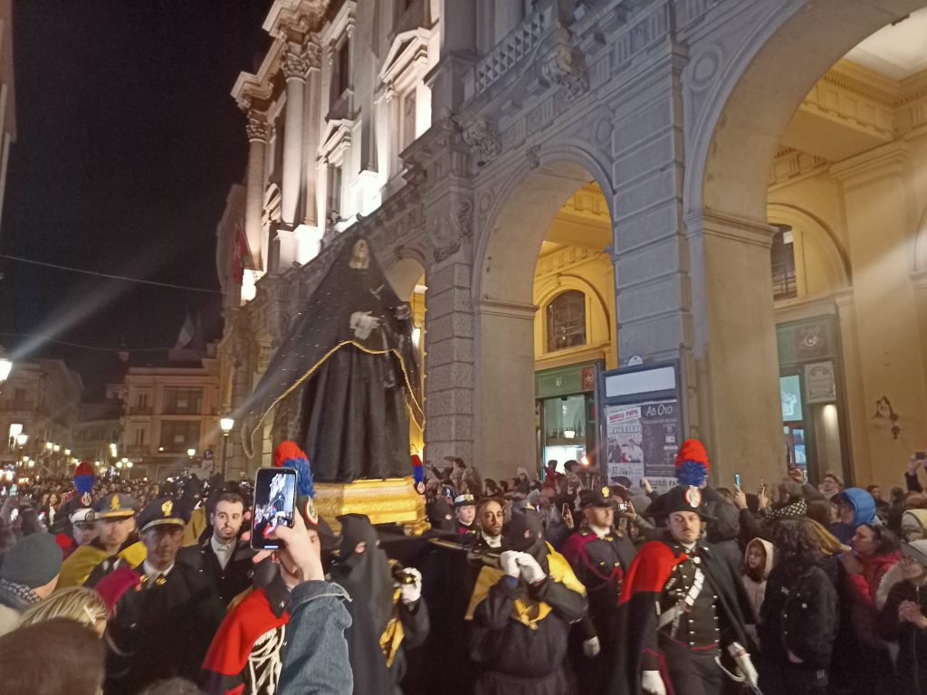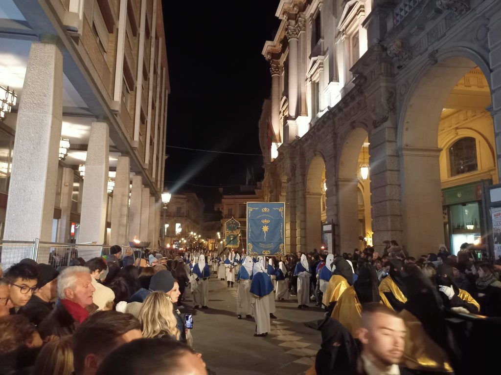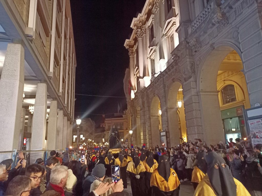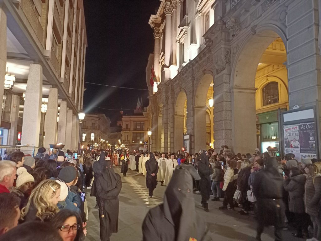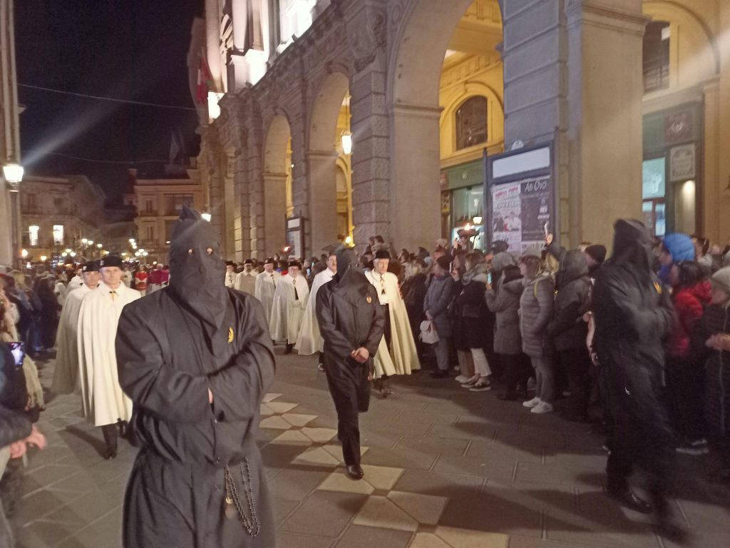 CHIETI- Un Venerdì Santo che difficilmente verrà dimenticato da Chieti e dalla sua gente, in occasione della storica processione teatina. Dopo lo stop causato dalle limitazioni sanitarie, la città torna a celebrare la liturgia con rinnovato spirito e un corteo arricchito dai 7 simboli della Passione, dai confratelli degli ordini religiosi, senza tralasciare la suggestività dei cantori e dei musicisti tra le note del Miserere di Selecchy.