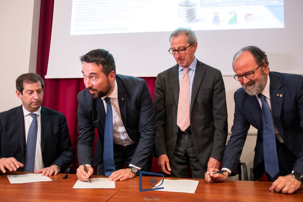 A sottoscrivere l’intesa, che segue la firma di un protocollo d’intesa avvenuta precedentemente, sono stati l’assessore regionale con delega all’Energia, Nicola Campitelli, l’assessore regionale a Formazione ed Istruzione, Pietro Quaresimale, il Rettore dell’Università degli Studi di Teramo, Dino Mastrocola, ed il sindaco del Comune di Lanciano, Filippo Paolini.