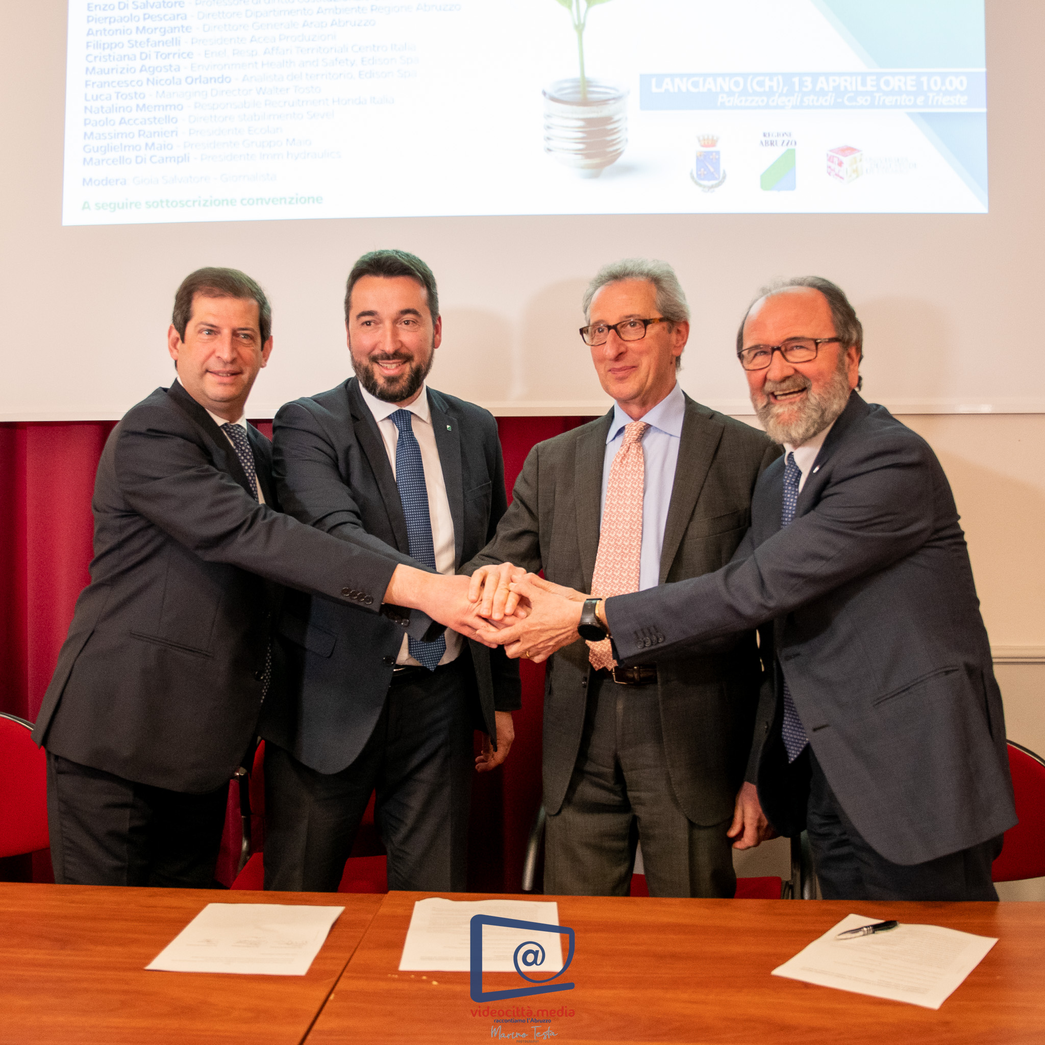 A sottoscrivere l’intesa, che segue la firma di un protocollo d’intesa avvenuta precedentemente, sono stati l’assessore regionale con delega all’Energia, Nicola Campitelli, l’assessore regionale a Formazione ed Istruzione, Pietro Quaresimale, il Rettore dell’Università degli Studi di Teramo, Dino Mastrocola, ed il sindaco del Comune di Lanciano, Filippo Paolini.