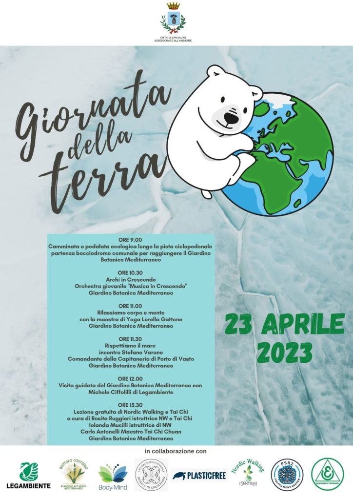 SAN SALVO- Domenica 23 aprile il Comune di San Salvo festeggerà la Giornata della Terra. “Invito i miei concittadini a farsi coinvolgere in questa giornata che vuol celebrare l’ambiente e la salvaguardia del pianeta Terra. Le iniziative che abbiamo messo in campo sono il risultato della preziosa collaborazione di diverse associazioni. Abbiamo tutti il dovere di proteggere la natura attraverso piccole azioni quotidiane che fanno bene a noi e al pianeta” commenta il sindaco Emanuela De Nicolis.