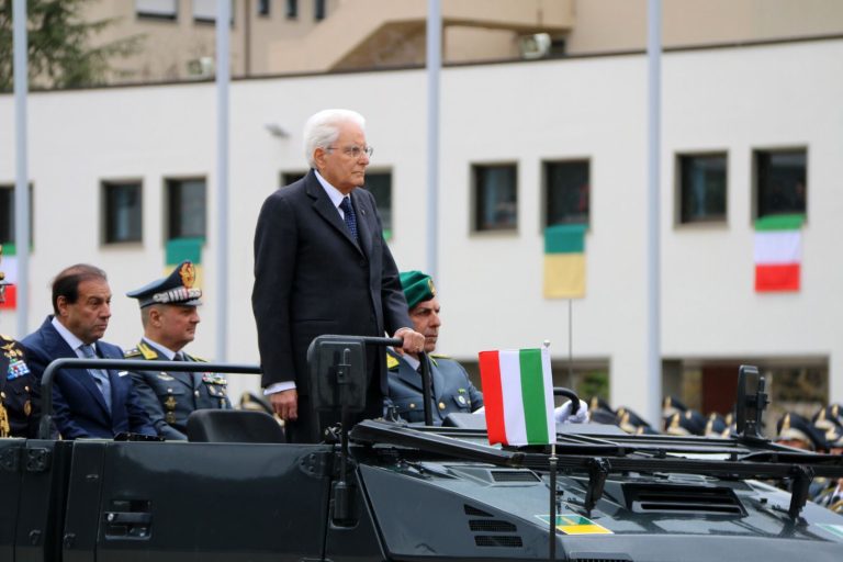 Altro momento solenne: il Presidente Mattarella ha conferito la medaglia d’oro alla bandiera della scuola, segno di rispetto e vicinanza al corpo e alla città.