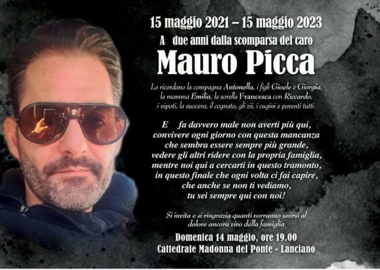 Una santa messa per ricordare Mauro Picca sarà celebrata domenica 14 maggio alle ore 19 nella Cattedrale Madonna del Ponte Lanciano.