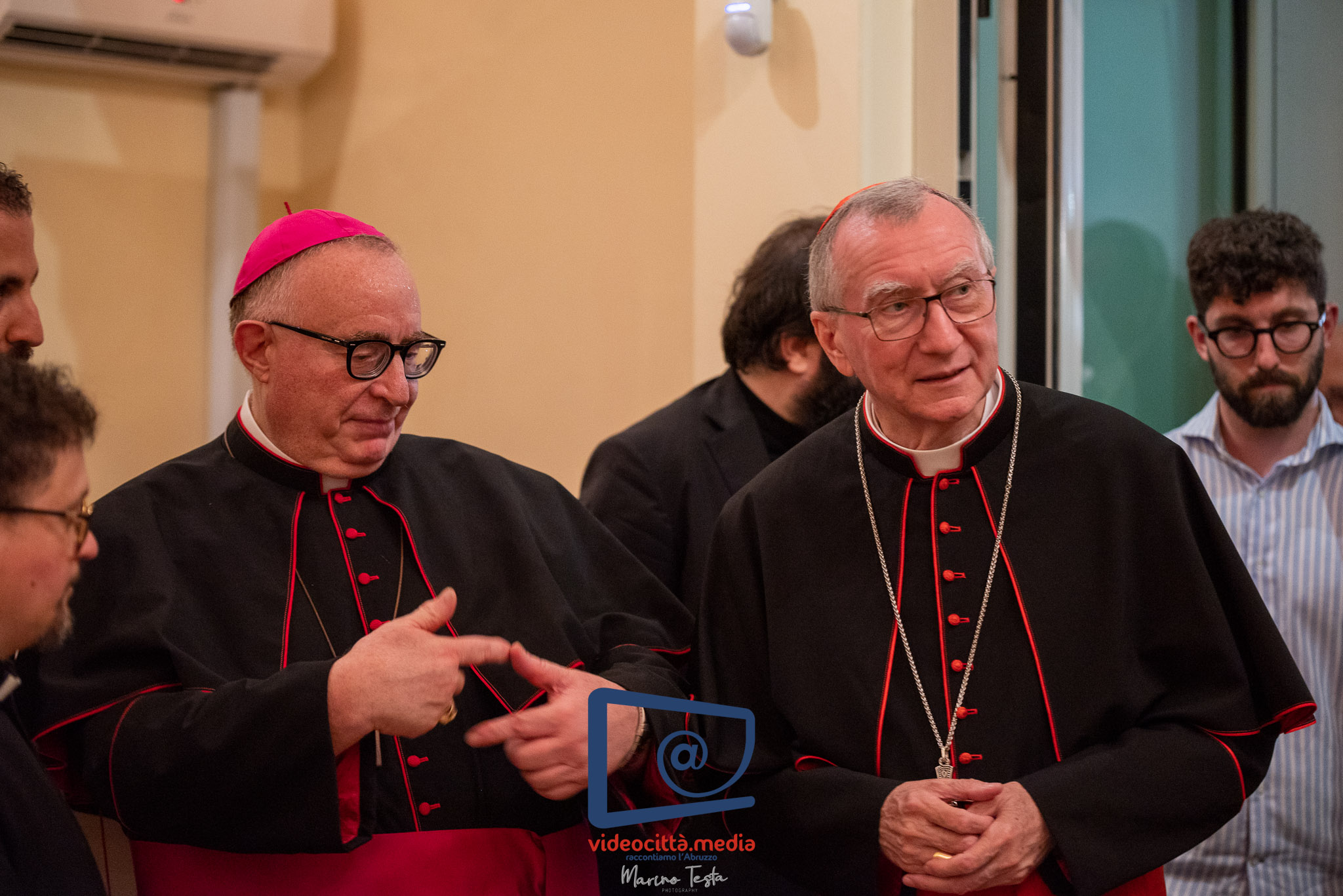 Parolin dal 2013 riveste la carica di segretario di Stato di papa Francesco, che l’anno successivo lo ha creato cardinale nel suo primo concistoro. Membro dal 2014 del Consiglio dei cardinali e, dal 2016, della Congregazione per il culto divino e la disciplina dei sacramenti, nel 2018 è stato elevato all’ordine dei cardinali vescovi. Il cardinale è stato accolto al suo arrivo in cattedrale dal sindaco Leo Castiglione, da sua eccellenza, monsignor Emidio Cipollone, dal vescovo di Pescara, monsignor Tommaso Valentinetti, e dal parroco della cattedrale don Roberto Geroldi e ha assistito alla inaugurazione e al ricollocamento del busto marmoreo del cardinale Federico Tedeschini, cittadino onorario di Ortona proprio per via del suo profondo legame con la città che lo ha portato più volte a pregare sulla tomba del Santo, nella cappella di Santa Maria Maddalena posta all’ingresso della cattedrale.