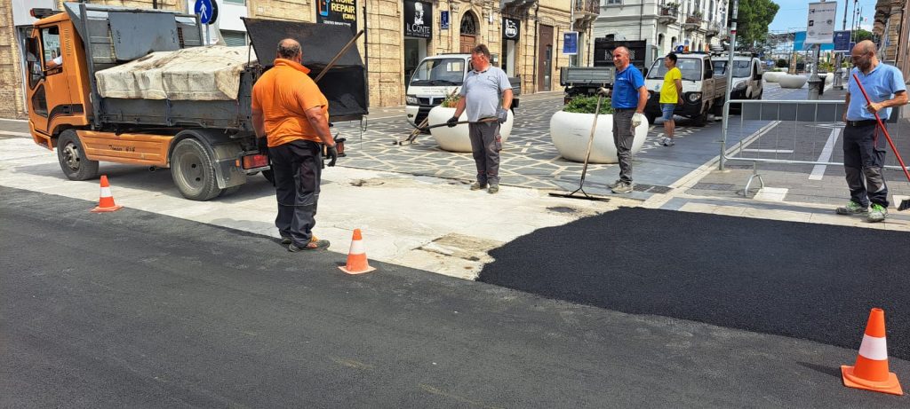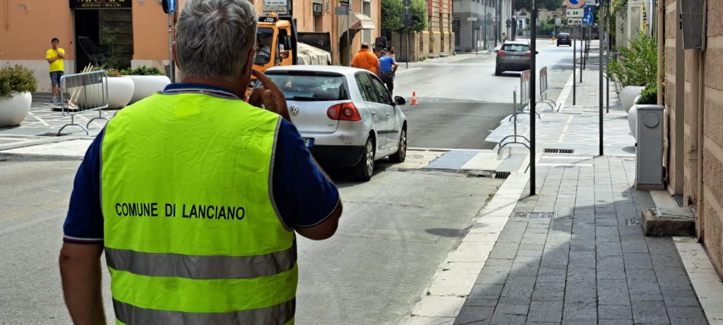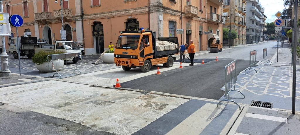 In azione i mezzi asfaltatrici e i rulli stradali. Il tappeto geometrico del corso di Lanciano, il corso “Presentoso” che voleva ricordare nel suo intricato disegno la presentosa abruzzese, di fatto non esiste più. Celebrato sulle riviste di architettura e “sventolato” come un’opera grandiosa ad oggi sarebbe da smatellare.