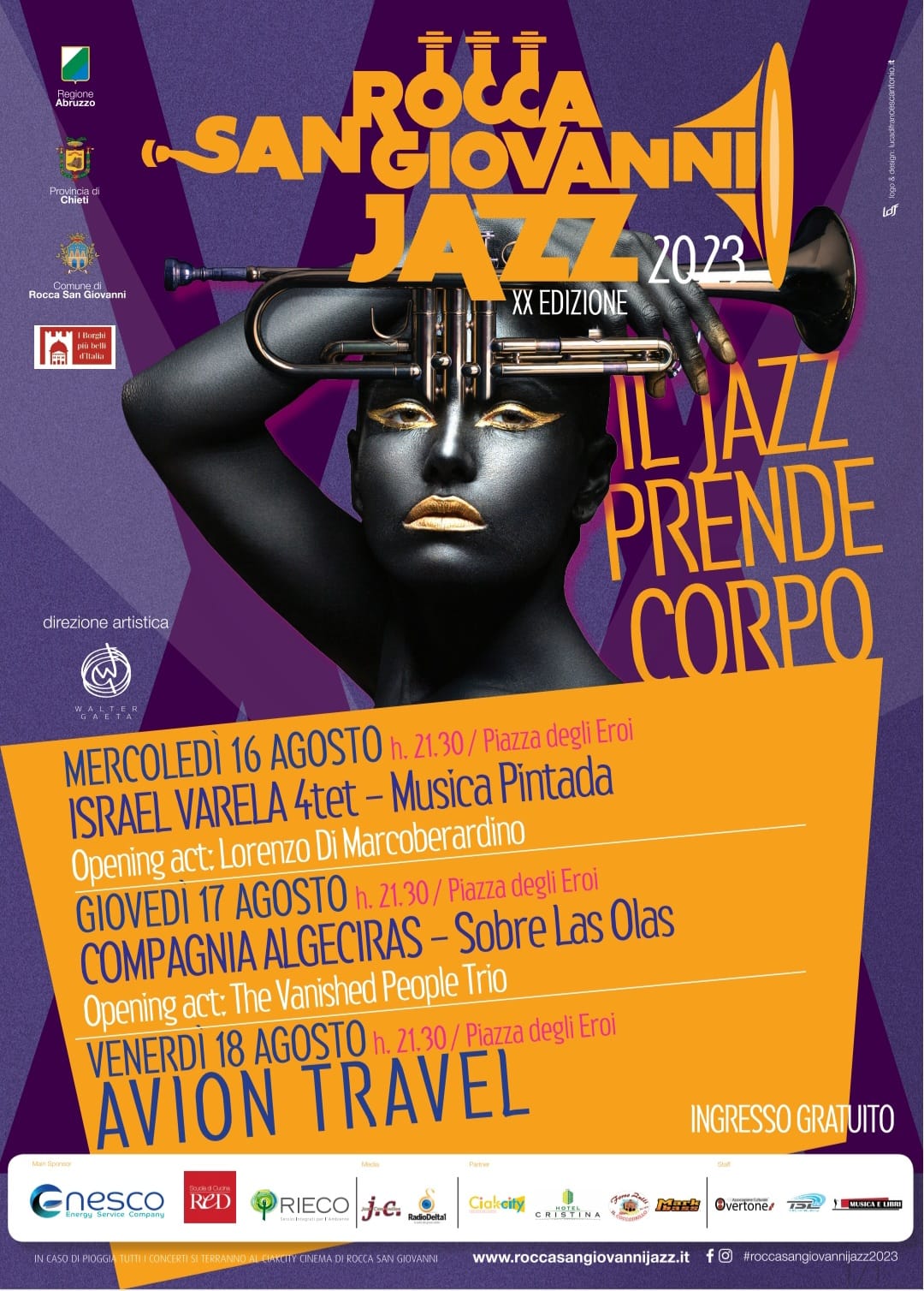 “Siamo emozionati e contenti di essere arrivati alla 20esima edizione del festival – commenta il direttore artistico Walter Gaeta -. Felici di questo bellissimo traguardo, anche quest’anno abbiamo cercato di essere imprevedibili nella scelta degli artisti per offrire al pubblico uno spettacolo unico. Avremo ospiti di grande calibro, da IsraelVarela, una vecchia conoscenza del festival che tra una tappa e l’altra della sua tournée internazionale passerà per Rocca San Giovanni, la Compagnia Algeciras, che proporrà uno spettacolo meraviglioso tra flamenco e jazz, e infine gli Avion Travel al completo che chiuderanno l’evento di quest’anno. Non abbiamo tralasciato i giovani che avranno grande spazio nelle prime due serate, con The Vanished People Trio ft Brigida e Lorenzo Di Marcoberardino, che daranno nuova linfa a questo prestigioso festival”.