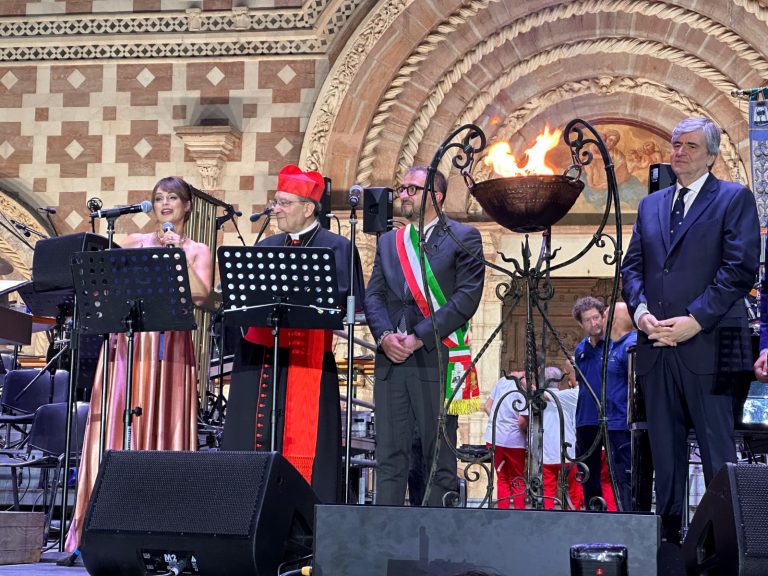 E poi l’Arcivescovo Metropolita dell’Aquila, Cardinale Giuseppe Petrocchi, ha ricordato come “Il fuoco della Perdonanza viene acceso non solo al Centro della città, ma anche nel Cuore del mondo”.