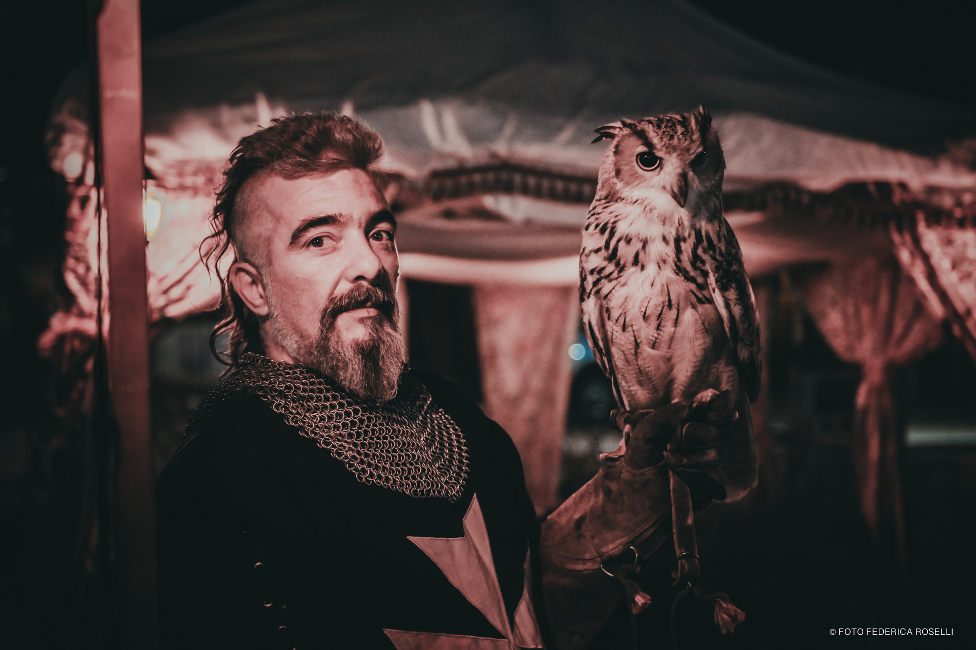 Il falconiere Davide Manzi al mercato Medievale del Mastrogiurato.