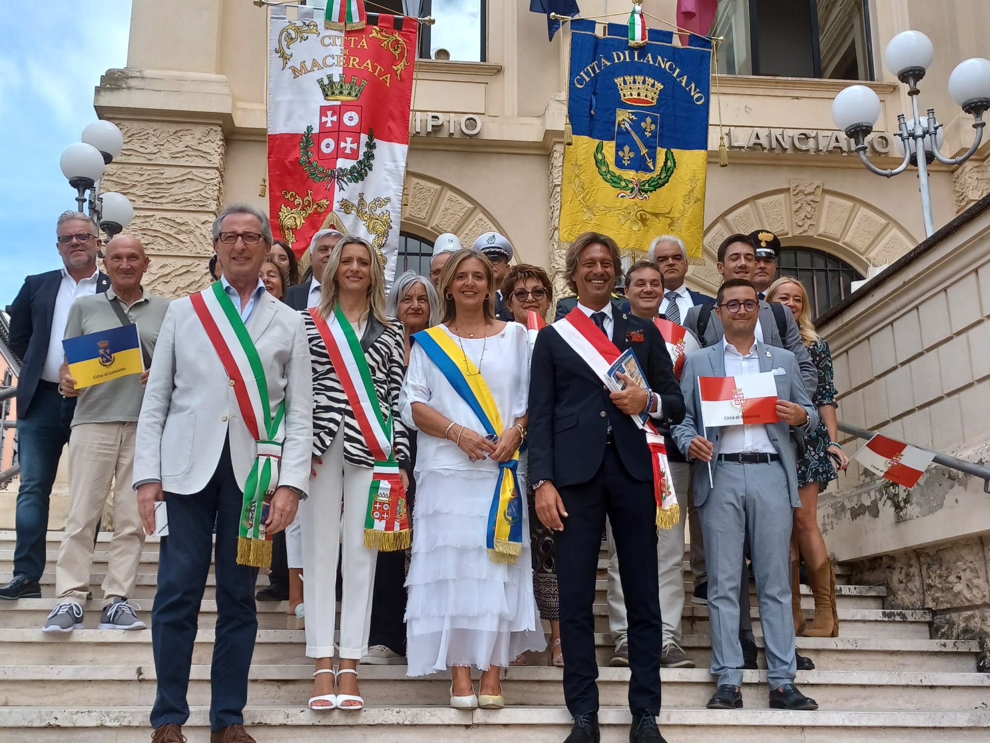Questa mattina, lunedì 4 settembre, l’amministrazione comunale di Lanciano guidata dal sindaco Paolini, insieme alla presidente del consiglio comunale Gemma Sciarretta, ha ricevuto a Palazzo di Città una delegazione della città di Macerata composta dalla vice sindaco Francesca D’Alessandro e dal presidente del consiglio comunale della cittadina marchigiana Francesco Luciani. La visita iniziata ieri in concomitanza con la rievocazione storica del Mastrogiurato è servita per rinsaldare il gemellaggio tra le due città, firmato lo scorso giugno, e che vede una sinergia per progetti e visioni comuni a livello turistico, fieristico, economico, culturale e sociale.