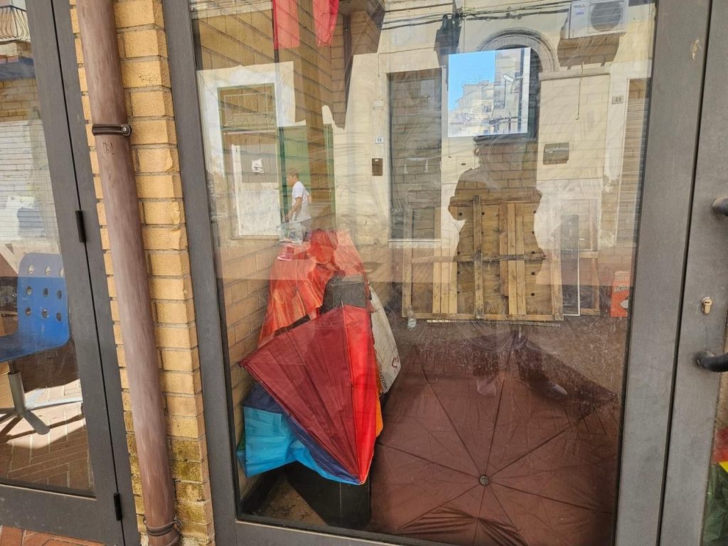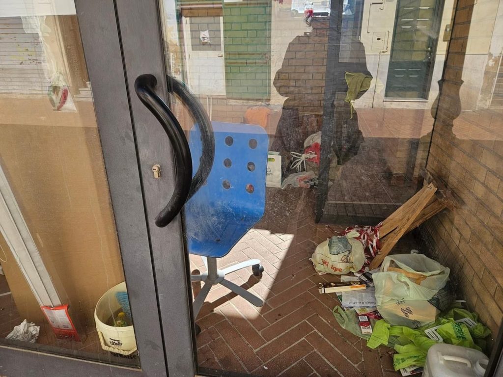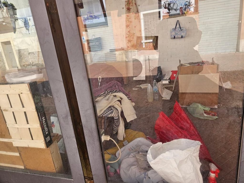 Ora invece possiamo trovarci, in ordine sparso, bottiglie conficcate nelle vetrine, spazzatura, legno di vecchi bancali, buste, stendi panni con tanto di magliette del Lanciano, sedie rotte, rivoli di urina, scritte sulle vetrine, decine di ombrelli piegati, bottiglie di plastica, abiti vecchi, scale e, soprattutto decine di buste annodate dal contenuto ignoto.