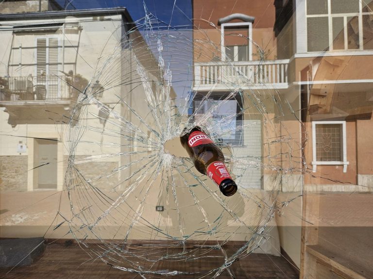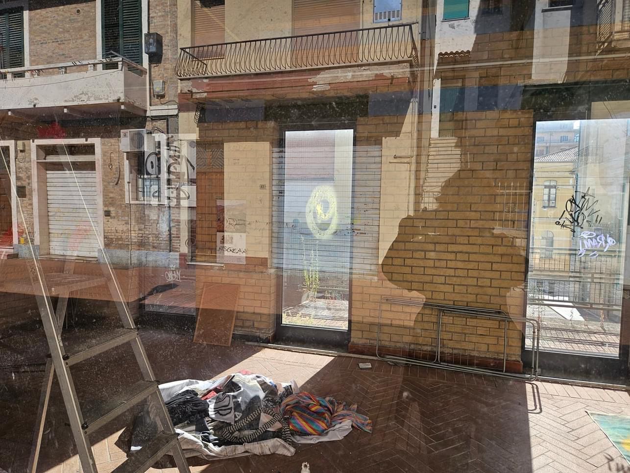 Ora invece possiamo trovarci, in ordine sparso, bottiglie conficcate nelle vetrine, spazzatura, legno di vecchi bancali, buste, stendi panni con tanto di magliette del Lanciano, sedie rotte, rivoli di urina, scritte sulle vetrine, decine di ombrelli piegati, bottiglie di plastica, abiti vecchi, scale e, soprattutto decine di buste annodate dal contenuto ignoto.