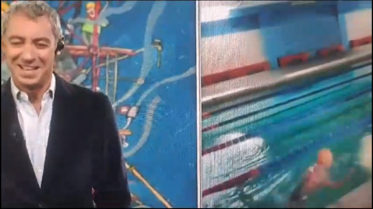 Il tuffo di Marsilio finisce sulla 7: ” qualcuno è pagato per consigliarlo”. L’ironia di Luca e Paolo su gesto atletico del presidente