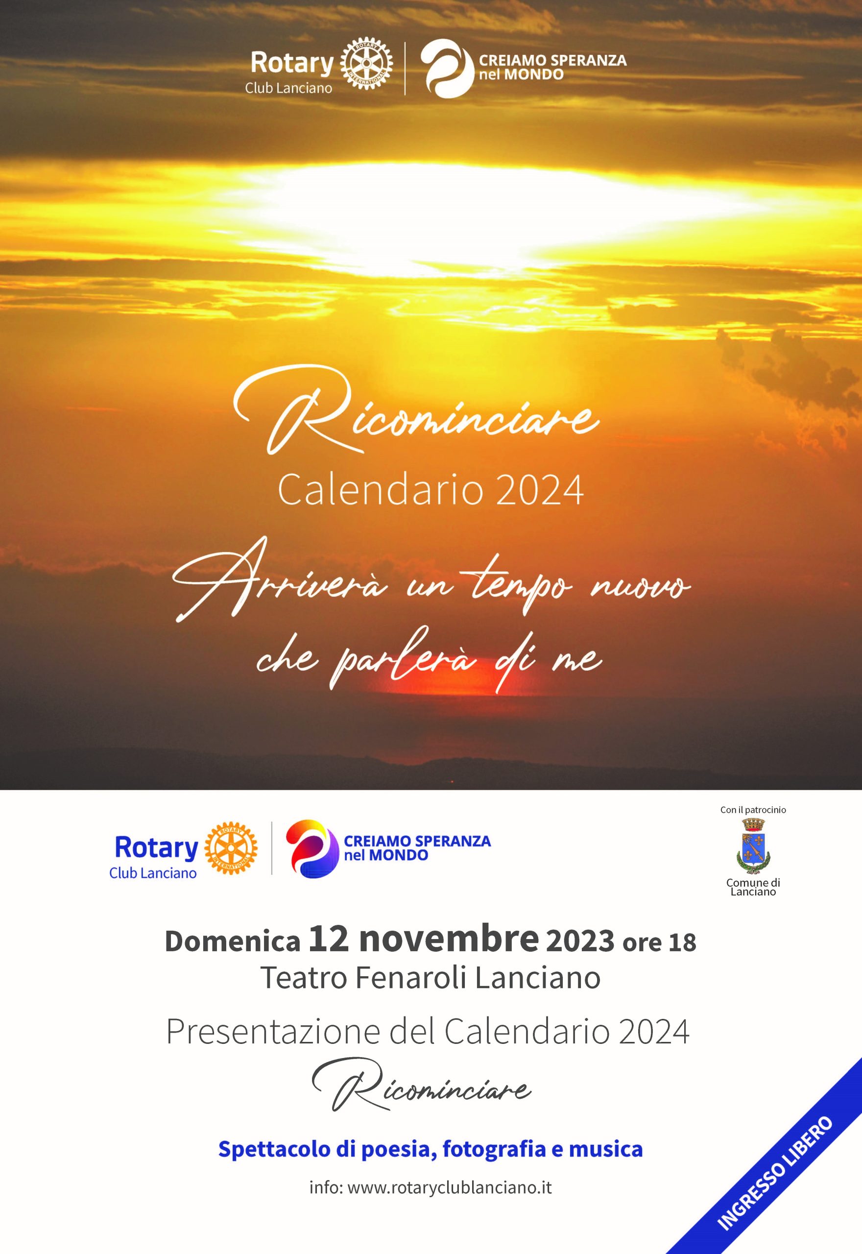L’iniziativa sarà presentata domenica 12 novembre alle ore 18.00 al Teatro Fenaroli nel corso dello spettacolo che, come ogni anno, tiene a battesimo il calendario, durante il quale versi, suoni e immagini saranno sapientemente mixati creando belle suggestioni.