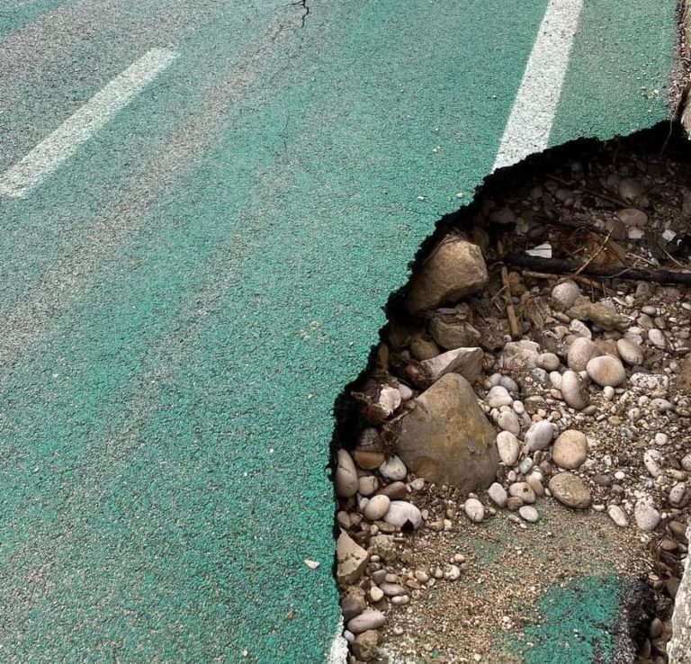 E’ il punto in cui la pista per il momento termina e da dove inizia il cantiere del nuovo lotto che dovrà bypassare le riserve regionali Ripari di Giobbe e Punta Ferruccio. Le segnalazioni del danneggiamento sono partite da chi frequenta la pista o per una passeggiata o per un allenamento sportivo. Nella mattinata di lunedì, sul posto, c’è stato un sopralluogo dei tecnici comunali con il dirigente dei lavori pubblici, Silvano Sgariglia, ed è stato preso il provvedimento di interdire il tratto alla circolazione. Il manto stradale è del tutto affossato, come se fosse sprofondato con buche molto profonde. Il sopralluogo effettuato ha evidenziato infatti «un innalzamento del tappetino d’asfalto dovuto, molto probabilmente  al gran quantitativo d’acqua che è arrivato dalle opere idrauliche fatte dalle ferrovie dello Stato».