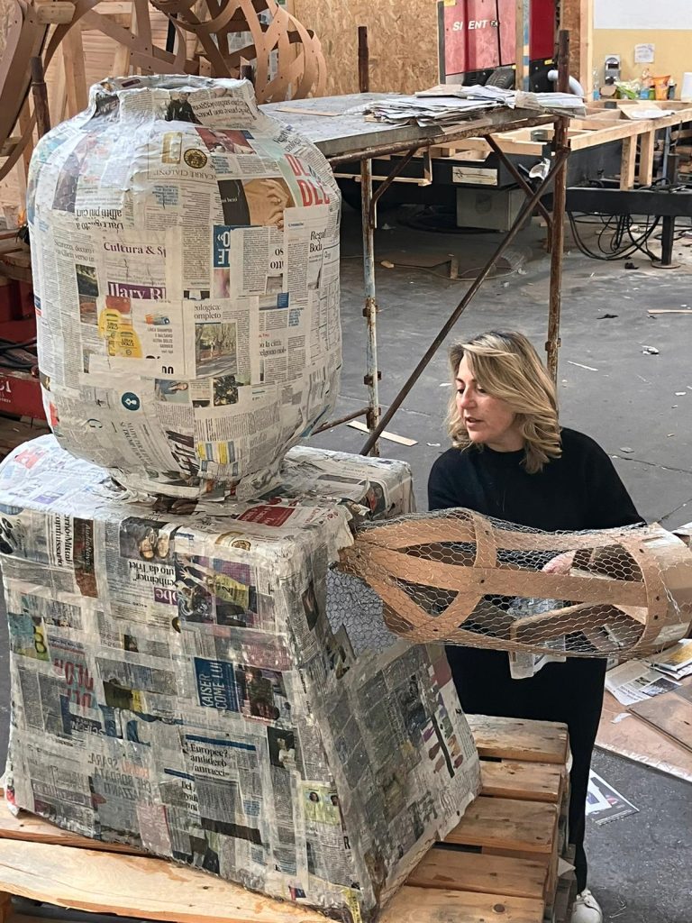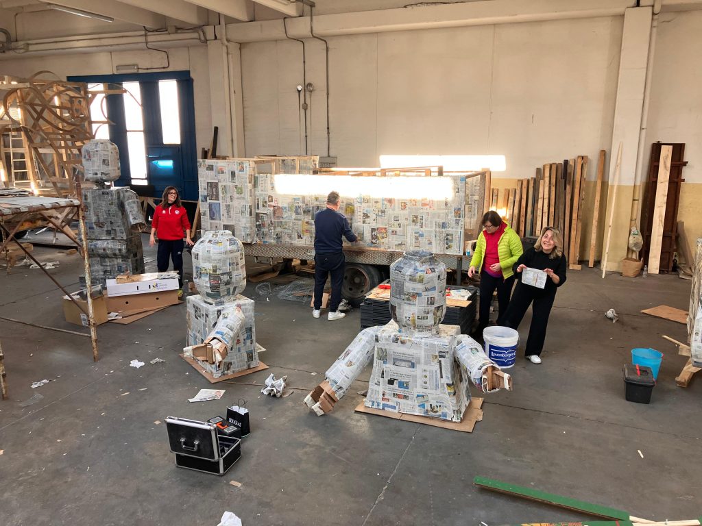 Una sfida che vede il gruppo mettere le mani in pasta o per meglio dire nella cartapesta e realizzare, giorno dopo giorno (e notte dopo notte), all’interno del capannone messo a disposizione della Cantina sociale, un carro per i bambini.
