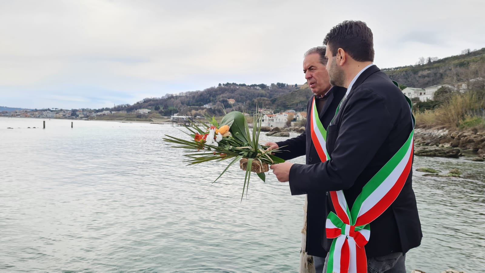 Due mazzi di fiori lanciati in mare dal piccolo molo di località Cavalluccio. Questo il gesto simbolico che i sindaci Enrico Di Giuseppantonio e Fabio Caravaggio hanno compiuto oggi in occasione della Giornata nazionale in memoria delle vittime del Coronavirus. Lo hanno fatto in rappresentanza delle Amministrazioni comunali e di tutti i cittadini di Fossacesia e Rocca San Giovanni, ricordando quanti hanno perso la vita nei due centri a causa del Covid ma anche quanti tra medici, sanitari, volontari, Forze dell’Ordine,sindaci, sono stati in prima linea durante le fasi più acute della pandemia.