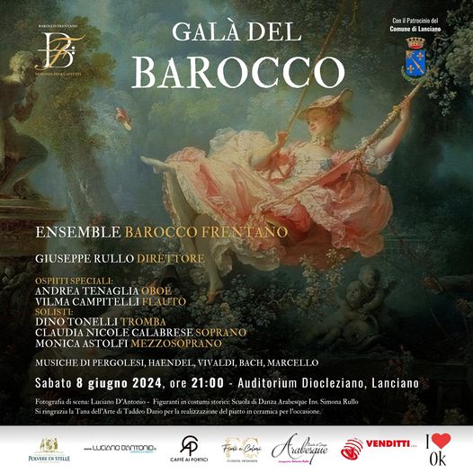 L’8 giugno 2024 ore 21.00 con il Patrocinio del Comune di Lanciano, l’Auditorium Diocleziano risuonerà delle melodie barocche eseguite dall’Ensemble Barocco Frentano, un evento che segna il secondo anniversario della nascita di questo gruppo musicale.