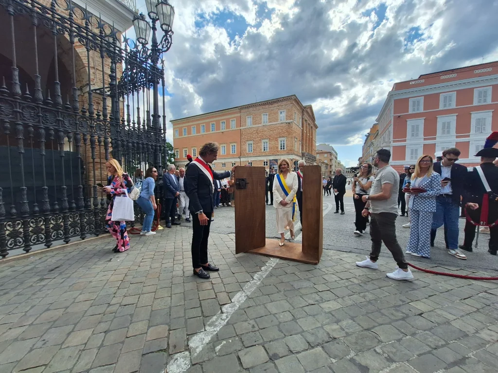 Dopo l’esecuzione dell’Inno di Mameli da parte del Presidente della Scuola Civica F. Fenaroli Roberto De Grandis, il vescovo di Macerata Nazzareno Marconi ha benedetto le chiavi della città e, una piccola porta, è stata simbolicamente aperta dal Presidente del Consiglio maceratese Francecso Luciani mentre le Autorità ne hanno poi oltrepassato la soglia- “E’ una giornata storica ha poi detto Luciani, non esiste cerimonia più alta del dare a qualcuno le chiavi della propria casa”.