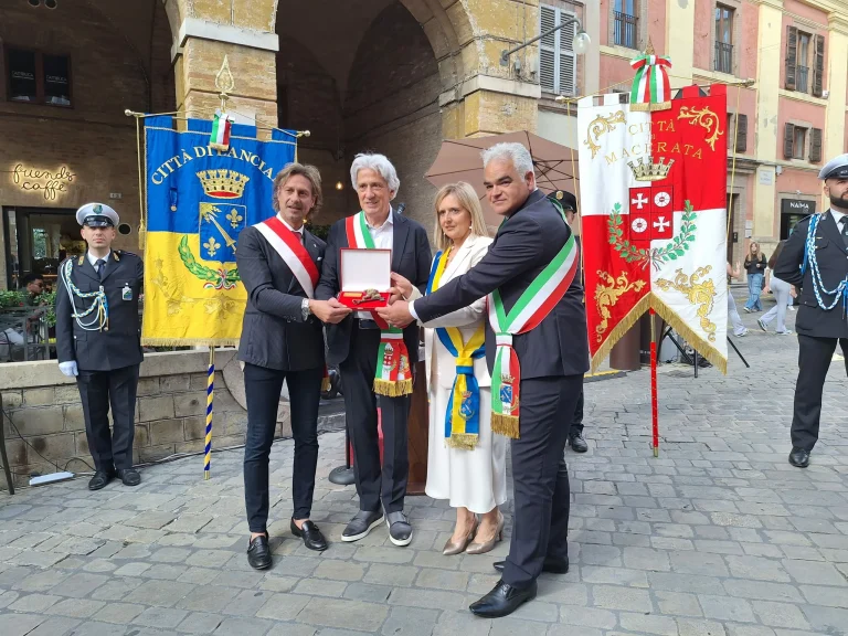 Ha voluto dedicare questo gesto di stima a tutti coloro che hanno perso la vita nel 1943/1944 rendendo la Città di Lanciano con il loro sacrificio Città medaglia d’Oro al valor militare, consegnando alla Città nelle mani del Sindaco di Macerata Sandro Parcaroli e del Presidente del Consiglio di Macerata Francesco Luciani, come simbolo di gratitudine e ricordo dell’evento, una pergamena riportante la motivazione del conferimento di Città Medaglia d’Oro al Valor Militare.