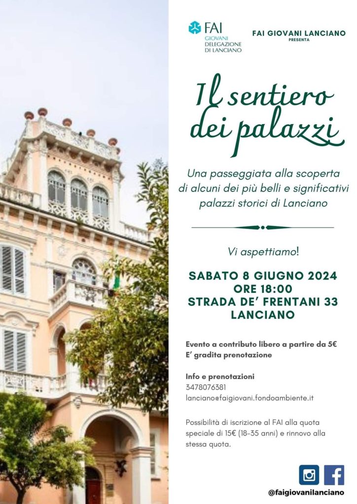 Oggi, sabato 8 giugno la Delegazione Fai di Lanciano organizza un particolare viaggio indietro nel tempo con un particolare itinerario guidato in un sentiero costellato di arte, storia e tanti personaggi da scoprire.