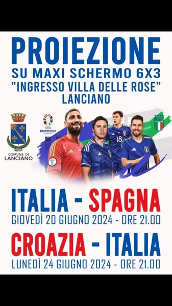 Anche Lanciano si prepara per quelle che tutti gli italiani sperano siamo “Notti Magiche”.Per seguire al meglio ed insieme le prossime gare degli Azzurri di Spalletti ai Campionati Europei di Germania, all’ingresso del parco di Villa delle Rose sarà posizionato un mega schermo.