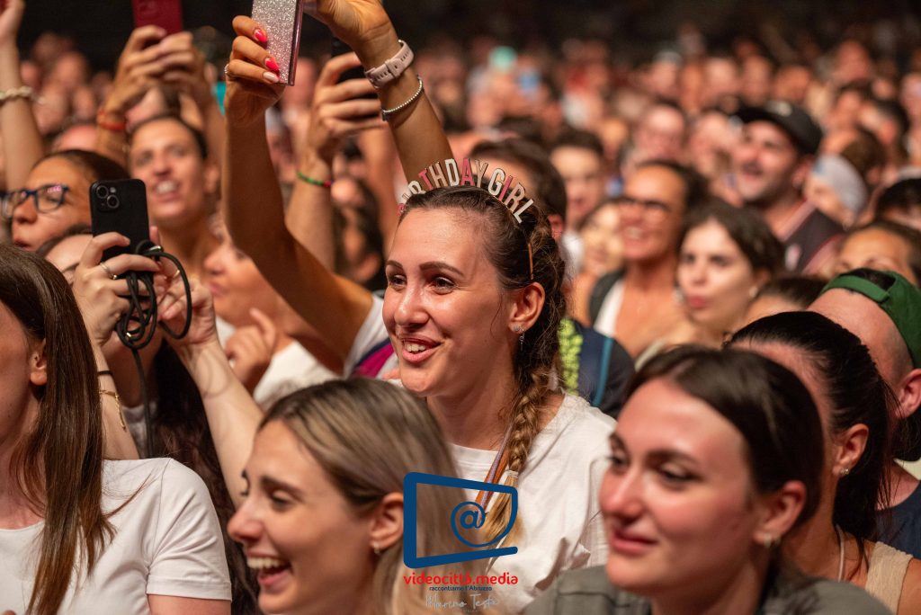 Subito dopo l’ingresso dell’artista, ecco il coro “sei bellissima” intonato dalla platea centrale, poi spazio ai grandi classici e alle nuove uscite dell’ex giudice di X Factor, che coinvolge il pubblico a ballare.