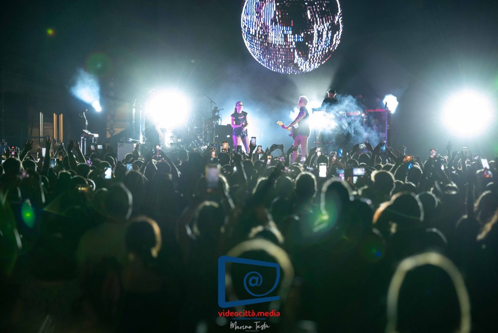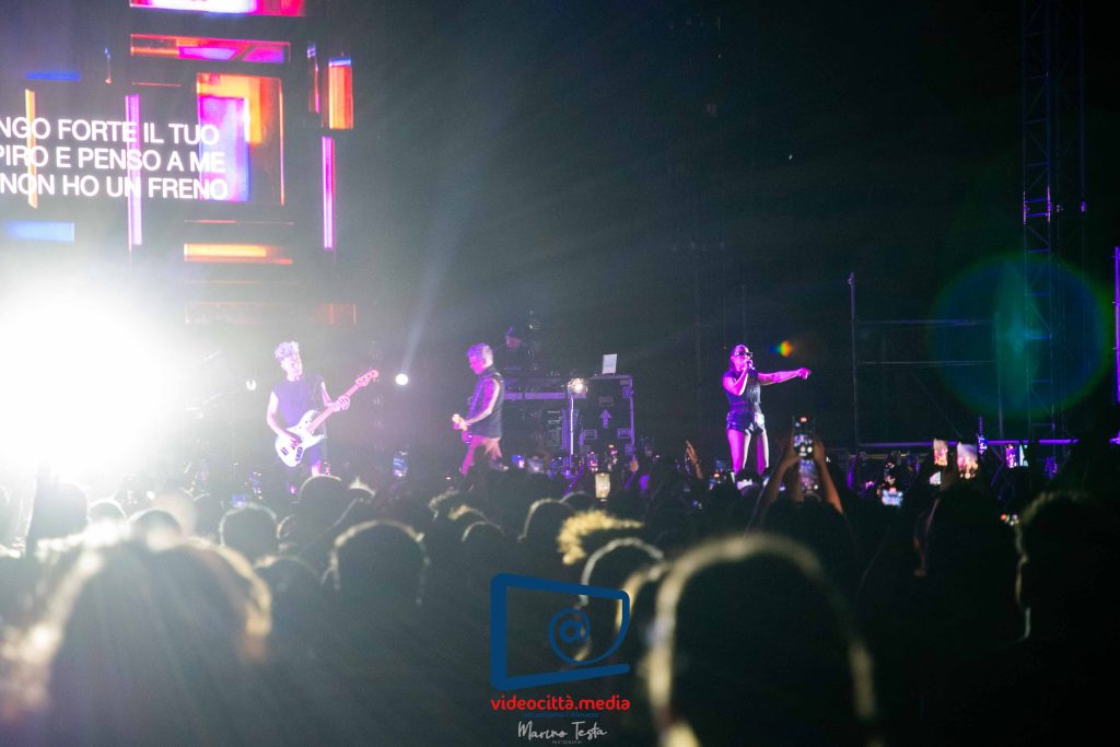 C’è tempo e modo per intonare insieme ai fan, grazie all’ausilio del proiettore sul palco, anche le hit storiche della musica italiana, in un piccolo angolo karaoke che fa da preludio al pezzo cardine dell’ultimo Sanremo, Apnea. Si raccolgono le luci attorno ad una porzione di pit, Emma scende verso le persone presenti in prima fila per cantare la versione decisamente più dolce, o meglio soft e meno discodance del brano.