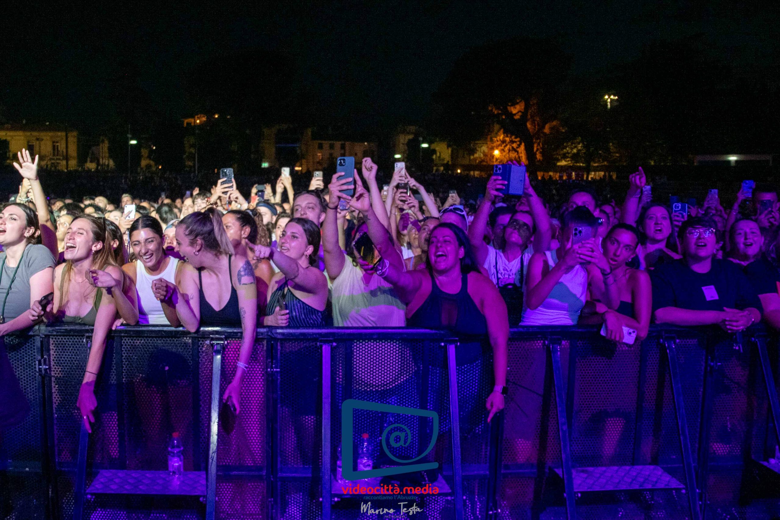 Emma cavalca la prima serata al Parco Villa delle Rose e accende Lanciano sotto una cornice variopinta. Una bella serata quella trascorsa da famiglie, coppie, anziani e giovanissimi in piacevole compagnia: l’inizio del concerto intorno alle ore 21:15 è un bagno di applausi per la cantante italiana, ma vediamo quali sono i punti salienti dell’evento.