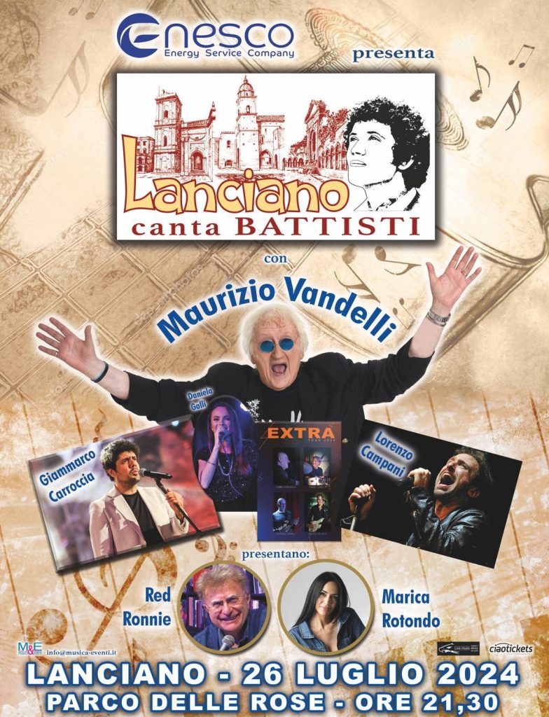 L’associazione Musica & Eventi di Maurizio Trevisan, in collaborazione con Enesco srl, presentano al Parco Villa delle Rose “Lanciano canta Battisti”, omaggio al più importante cantautore italiano.