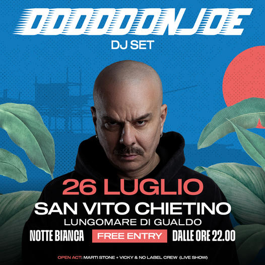 Si terrà questa sera, venerdì 26 luglio dalle ore 22 sul Lungomare di Gualdo di San Vito, il dj set di Don Joe, fondatore insieme a Guè e Jake La Furia del celebre trio dei Club Dogo. L’evento che è inserito nella Notte Bianca, vedrà la partecipazione in open act di altri artisti come la rapper frentana Marti Stone e di Vicky e No Label.