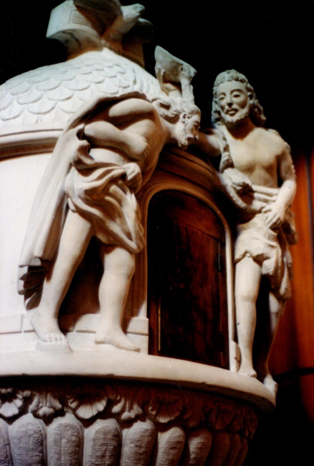 Qui, i visitatori possono ammirare il trittico composto dalla fonte battesimale e dalle due acquasantiere, un capolavoro di unione tra composizione, decorazione e simbologia. Particolarmente suggestivo è l’angelo custode scolpito all’interno della fonte battesimale, di profonda ispirazione filosofica.