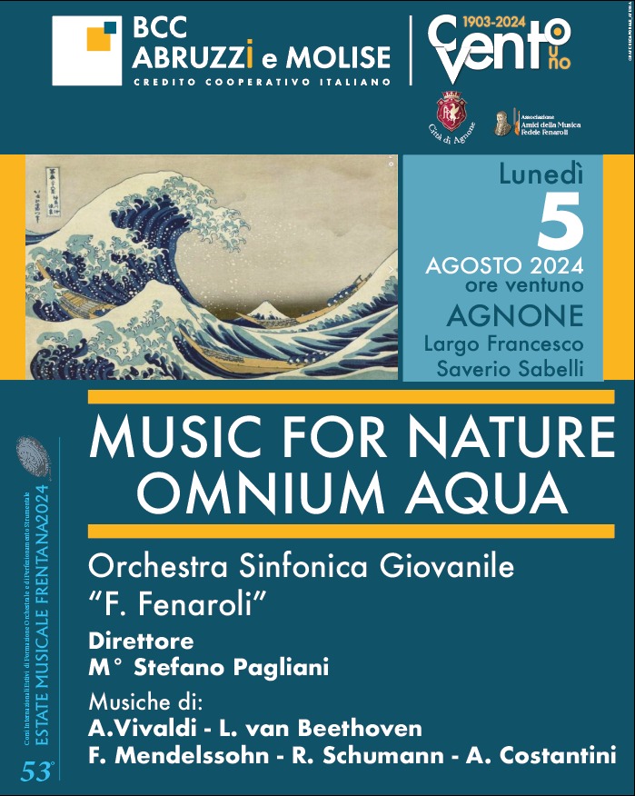 Lanciano- Torna domenica 4 agosto la grande musica delle orchestre dell’Estate Musicale Frentana con Music for Nature – Omnium Aqua. L’appuntamento con l’Orchestra Sinfonica Giovanile “Fedele Fenaroli” diretta dal M° Stefano Pagliani, gradito ritorno a Lanciano, con il solista Ilya Grubert, è per domenica 4 agosto, alle ore 21, alle Torri Montanare, con un programma di pregio che, come accade negli ultimi anni, strizza l’occhio all’ambiente ed alla sensibilizzazione sui temi green.