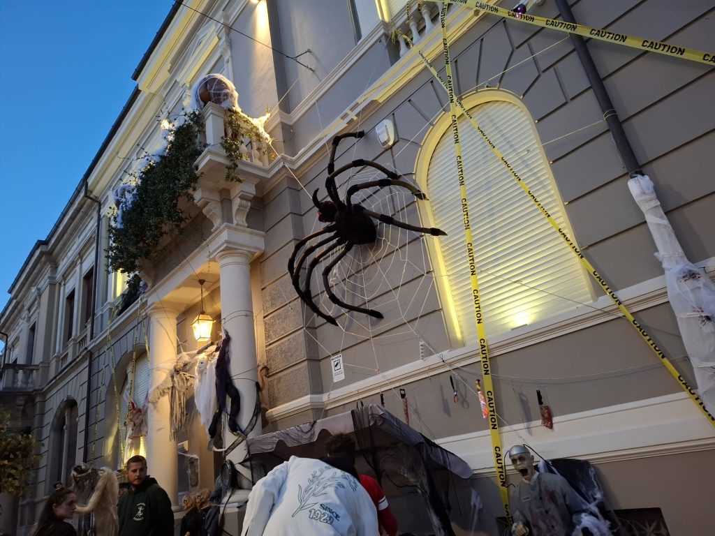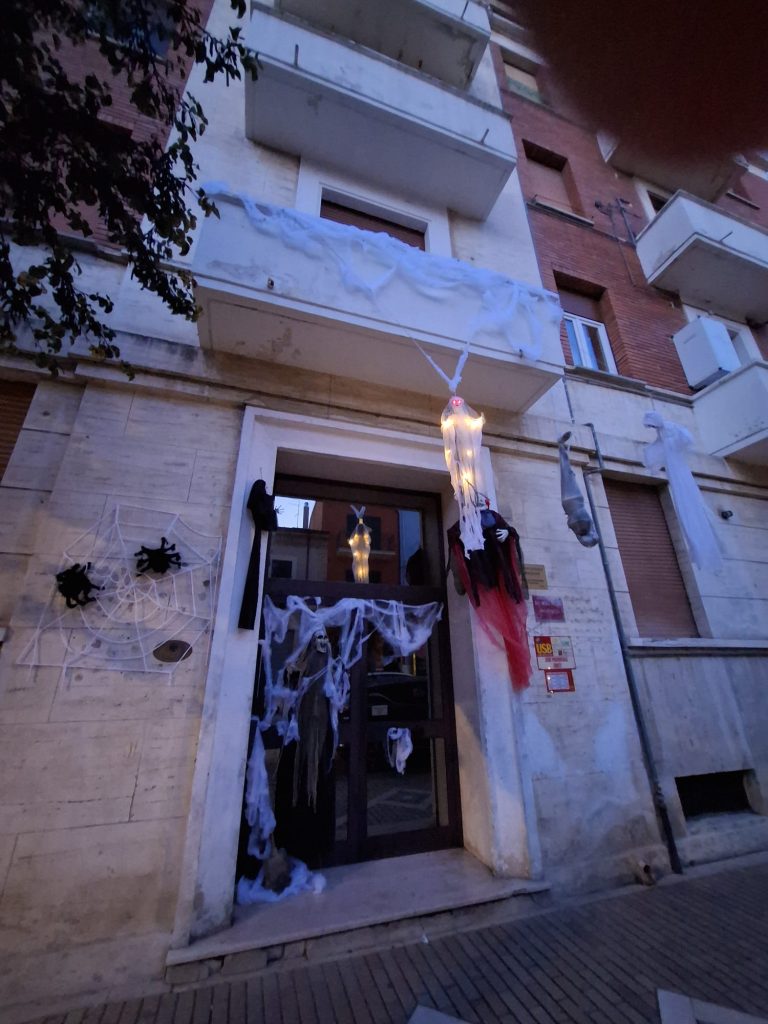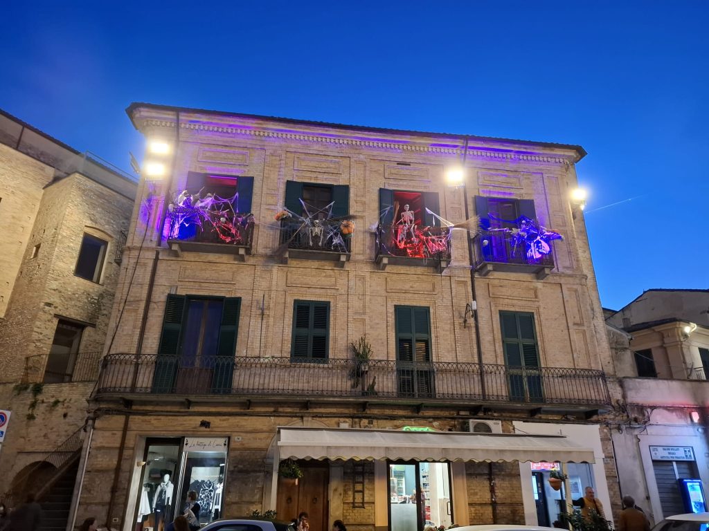 E grazie a questo esempio, altri condomini lungo Via Vittorio Veneto hanno cominciato ad allestire ingressi e portoni per Halloween, tanto che persino in Piazza Plebiscito è comparso un balcone “stregato.”