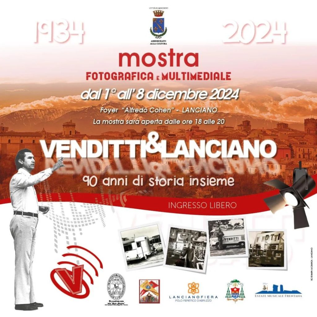 Per ricostruire nei dettagli e far conoscere questo pezzo di storia vissuta e raccontata insieme, si apre oggi, domenica 1 dicembre, alle 12, nel foyer “Alfredo Cohen” (ubicato sotto il teatro Fenaroli) di Lanciano, la mostra fotografica e multimediale “Venditti e Lanciano: novant’anni di storia insieme” che sarà visitabile gratuitamente fino a domenica 8 dicembre.