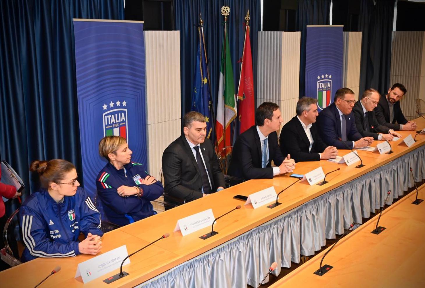 Alla conferenza stampa sono intervenuti anche il presidente della Divisione calcio a 5, Stefano Castiglia, il presidente del Comitato regionale della Lega Nazionale Dilettanti, Concezio Memmo, il sindaco di Montesilvano Ottavio de Martinis, l’assessore del Comune di Montesilvano. Alessandro Pompei, il capo delegazione della Nazionale, Antonio Scocca, la Ct della Nazionale, Francesca Salvatore, pescarese di nascita, e la capitana Ludovica Coppari.