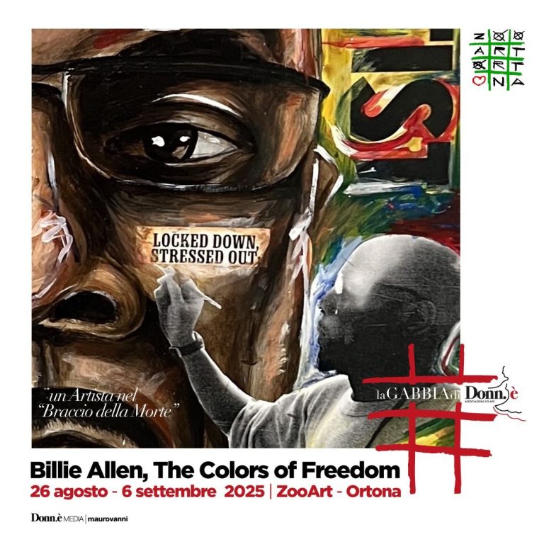 Nell’ambito della seconda edizione della rassegna estiva “Donn.é entra in gabbia”, organizzata dall’associazione Ets-Aps Donn.è, la gabbia 1 di ZooArt ospiterà dal 26 agosto, per quindici giorni, la mostra di Billie Allen, “The Colors of Freedom- Un artista nel braccio della morte”.