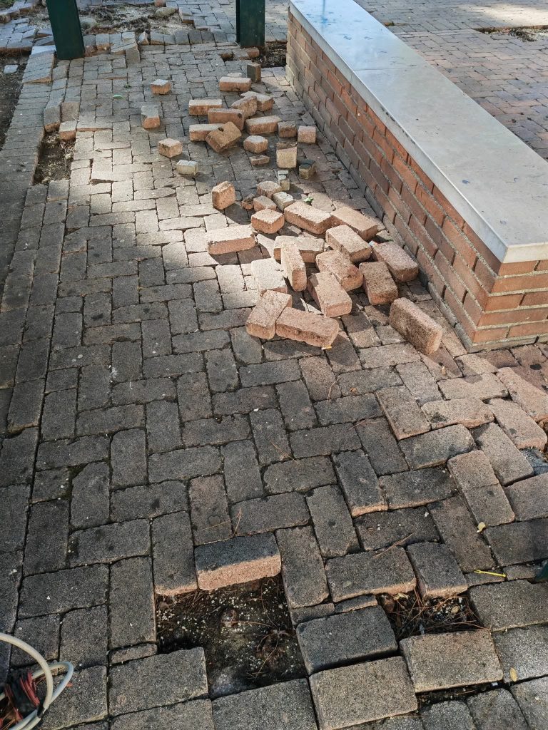 I Viali delle Rose, un tempo punto di riferimento per passeggiate e momenti di socialità, oggi versano in condizioni di completo abbandono. Marciapiedi sconnessi, pietre divelte e mattoni accatastati nelle aiuole – ormai prive delle rose che davano nome al viale – rendono l’area non solo trascurata ma anche pericolosa.