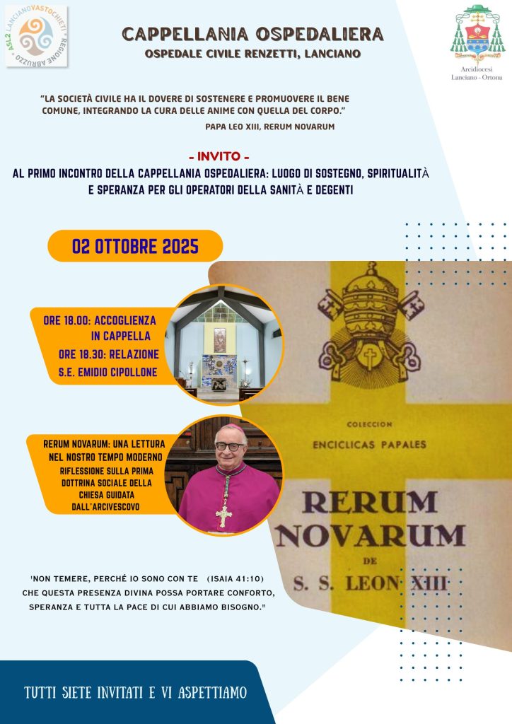 “Un luogo di sostegno, spiritualità e speranza per gli operatori della sanità e i degenti”: è questa la Cappellania ospedaliera che, giovedì 2 ottobre alle 18, sarà presentata nella chiesetta dell’ospedale Renzetti di Lanciano alla presenza di S.E. Monsignor Emidio Cipollone. “Nel percorso del cammino sinodale le diocesi sono state invitate ad individuare alcuni “cantieri” che potevano rendere più comprensibile e più efficace l’annuncio e la testimonianza del Vangelo di Gesù e la presenza della comunità ecclesiale nella società e nel mondo”, spiega l’arcivescovo.