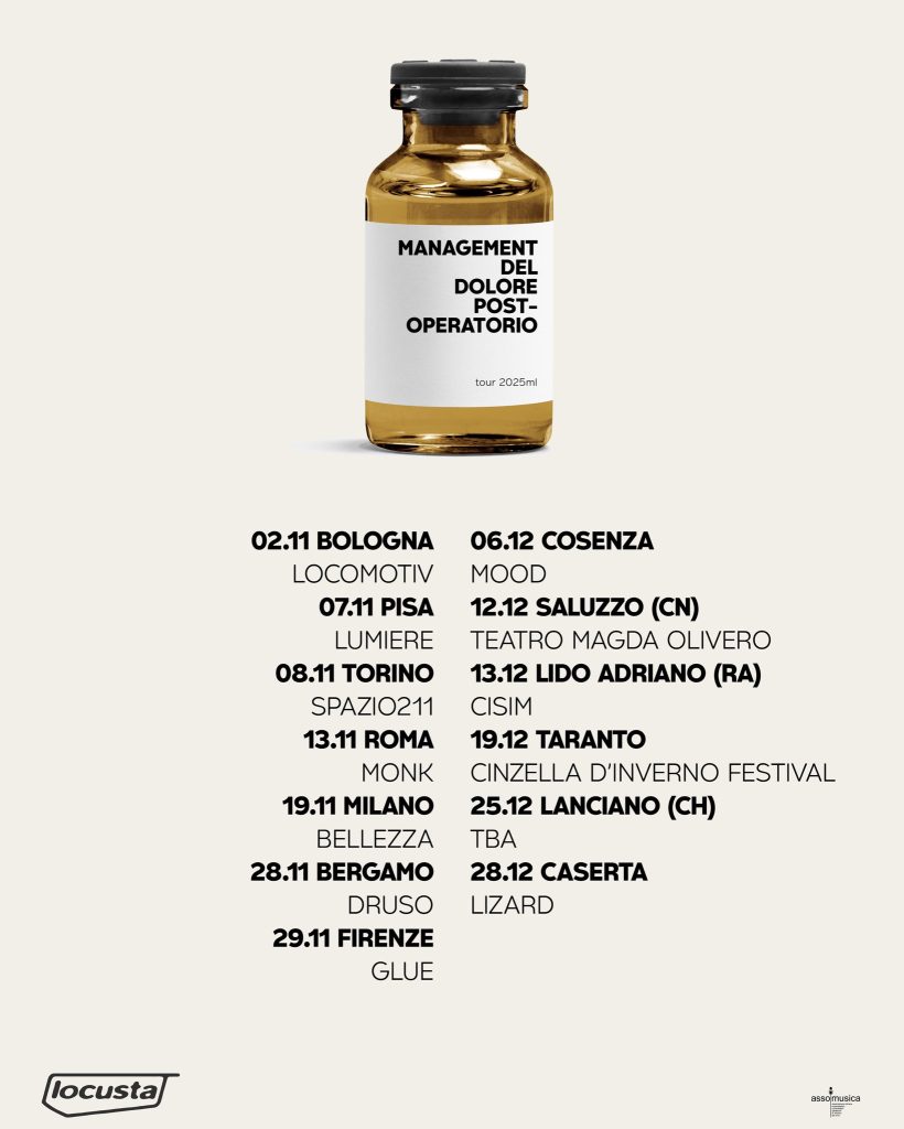 A novembre inizierà infatti un nuovo tour che, a cavallo tra i mesi autunnali ed invernali, vedrà il Management del Dolore Post Operatorio, calcare i palchi di tutta l’Italia, chiudendo in bellezza questo 2025.