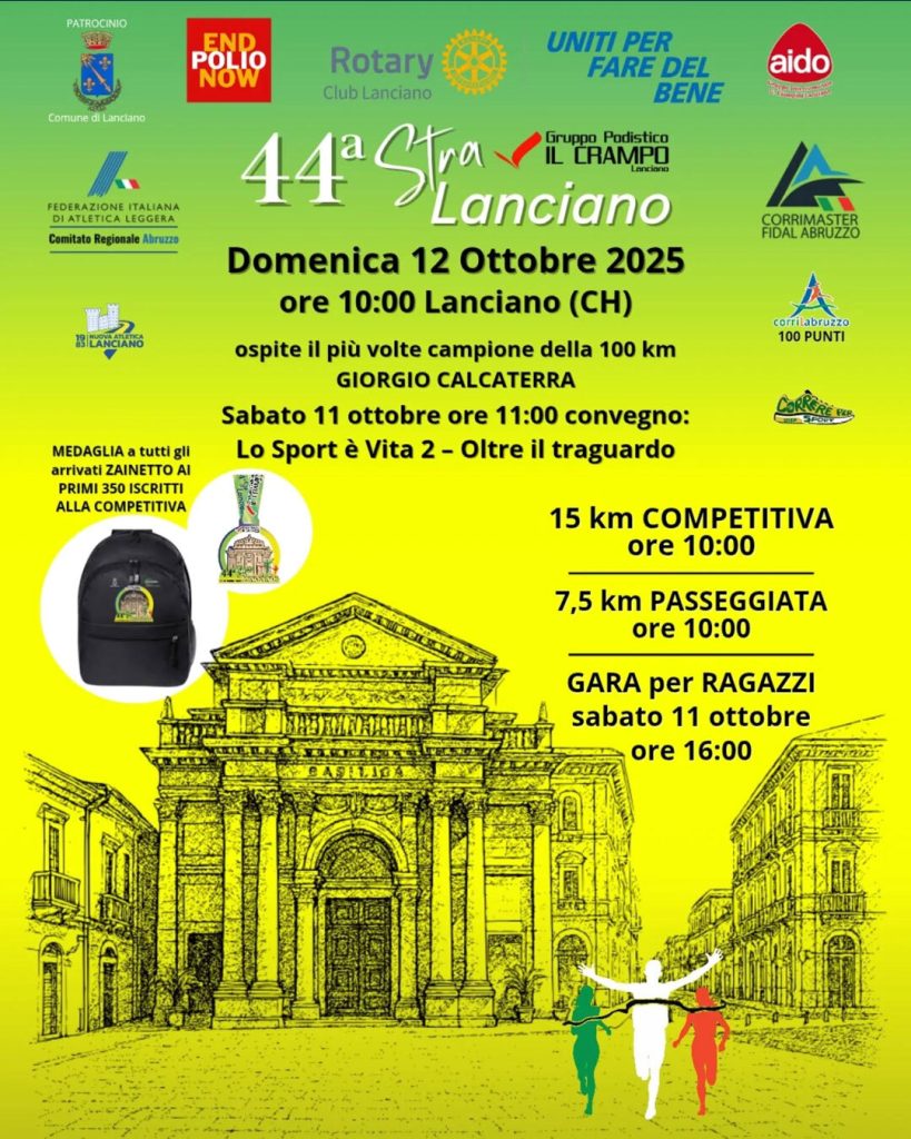 Sarà un week end denso di appuntamenti, nel segno delle “3 S”, salute, sport e solidarietà. Lanciano si prepara a vivere sabato 11 e domenica 12 ottobre due giornate che si annunciano a dir poco intense, con la StraLanciano e le iniziative collegate alla storica corsa podistica, giunta alla 44^ edizione. Inedito, e sicuramente degno di nota, il coinvolgimento del Rotary Club Lanciano, che per iniziativa del Presidente Rocky Mariano sarà partner della manifestazione e impegnato a tutto campo in entrambe le giornate.