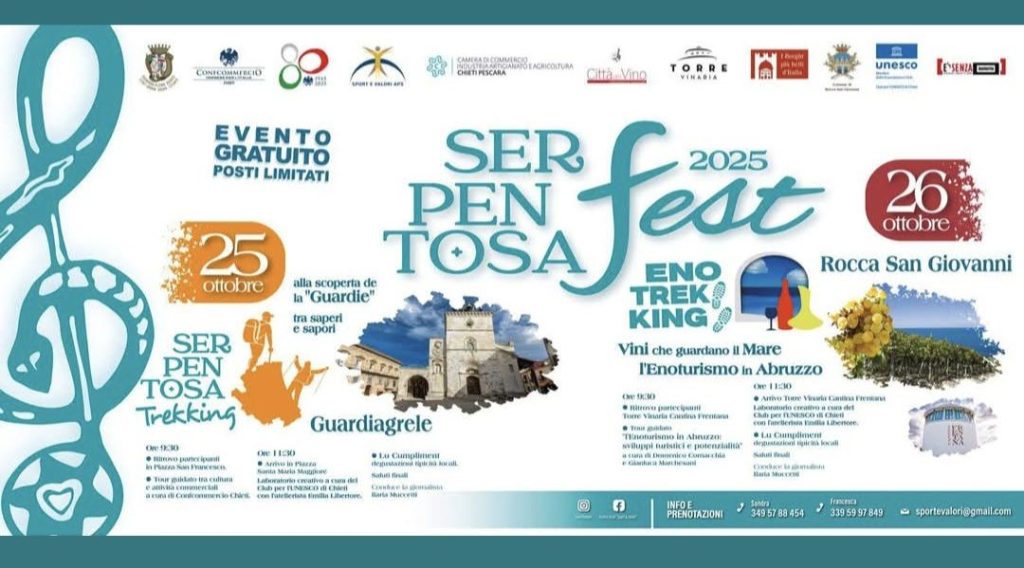 Dal cuore della Maiella alla Costa dei Trabocchi, prende il via la prima edizione del “Serpentosa Fest” , una iniziativa di Sport e Valori APS di Luigi Milozzi e Giampiero Davide con l’intento di unire cultura, tradizione, enogastronomia e valorizzazione del territorio.