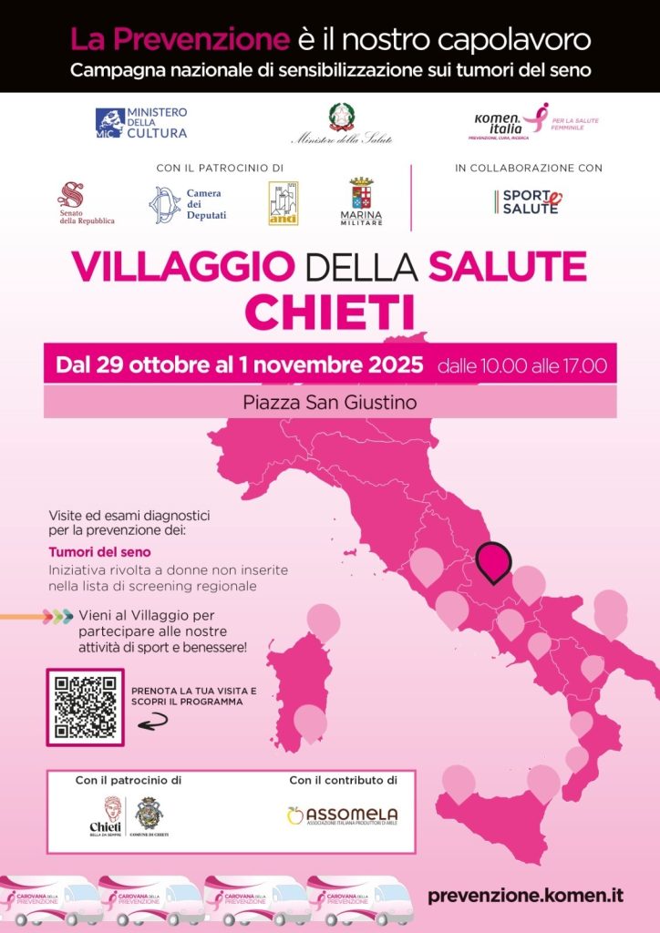 Quella di Chieti è l’undicesima tappa della carovana, unica nella Regione. Coinvolti la Breast Unit Ortona diretta da Simona Grossi; l’Università d’Annunzio con Andrea Di Blasio, delegato per le attività sportive dell’Ateneo; l’Ospedale civile di Chieti con Manuela Di Virgilio direttore medico.