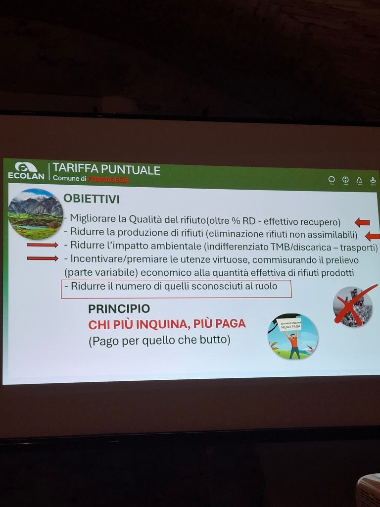 Martedì 28 ottobre, presso la Sala Parrocchiale di Villa Scorciosa, si è svolta un’assemblea pubblica dedicata alla presentazione del progetto “Tariffa Puntuale”, promosso dal Comune di Fossacesia in collaborazione con Ecolan S.p.A.. L’iniziativa, che prenderà avvio ufficialmente il 1° gennaio 2026, partirà in via sperimentale proprio da Villa Scorciosa per poi essere estesa progressivamente all’intero territorio comunale.