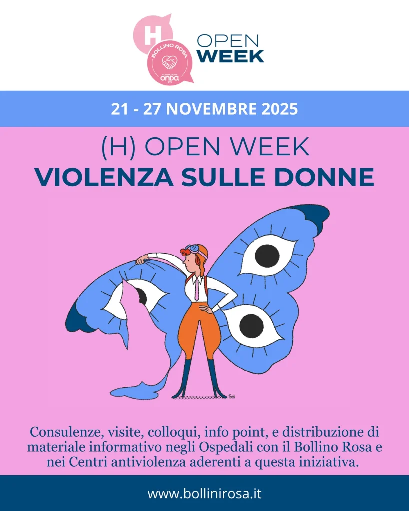 L’elenco completo dei servizi dell’(H) Open Week offerti dagli ospedali con il Bollino Rosa, dai centri antiviolenza e dalle farmacie con il Bollino RosaVerde è consultabile sul sito www.bollinirosa.it.