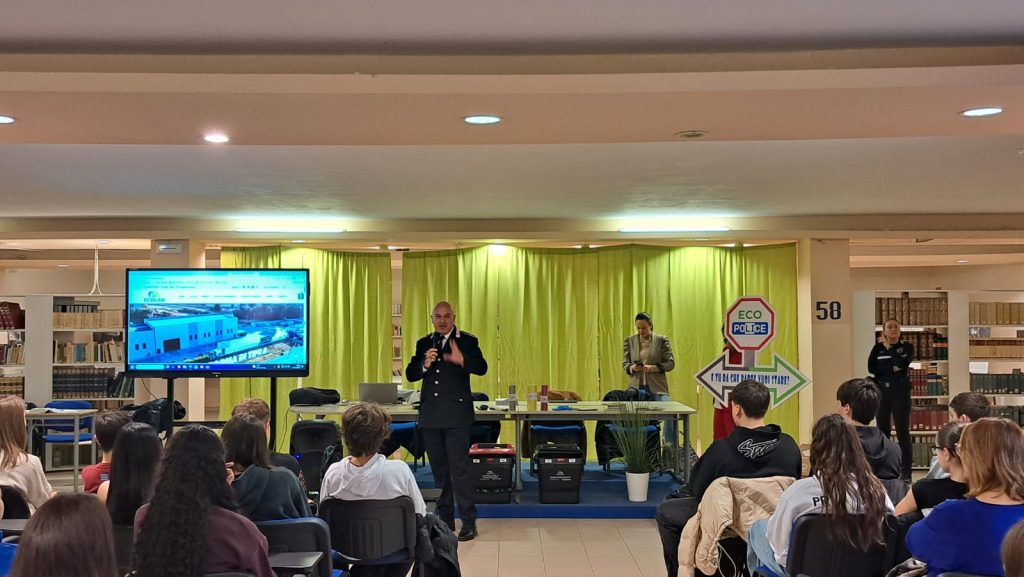 “Eco-Police” approda nelle scuole superiori di Lanciano. Lunedì 17 novembre, infatti, a ospitare il progetto, nato dalla collaborazione tra l’Assessorato alla Transizione Ecologica, il Corpo di Polizia Locale del Comune di Lanciano ed ECO.LAN. Spa, sono stati il Liceo Classico “Vittorio Emanuele II” e il Liceo artistico “Filippo Palizzi”, mentre ieri mattina, martedì 18 novembre, è stata la volta del Liceo Scientifico “Galileo Galilei”.