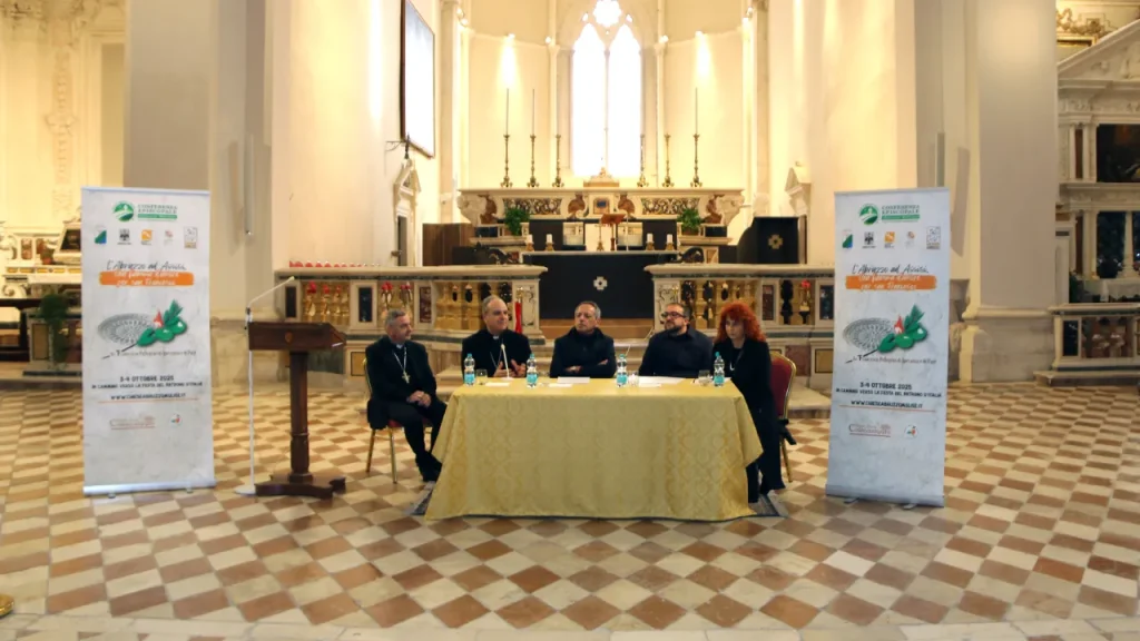 L’annuncio ieri mattina, a L’Aquila, nella Basilica di S. Maria di Collemaggio, alla presenza di mons. Michele Fusco, delegato dei Vescovi d’Abruzzo per gli eventi in onore di S. Francesco, del consigliere regionale Carla Mannetti, di Pierluigi Biondi, sindaco dell’Aquila, di Rinaldo Seca, sindaco di Castelli (TE), di Mons. Antonio D’Angelo, Arcivescovo Metropolita dell’Aquila, di Enrico Ricci, presidente Ance Abruzzo, del vice preside del Liceo artistico “Grue” di Castelli (TE) e una rappresentanza dei Vigili del Fuoco.