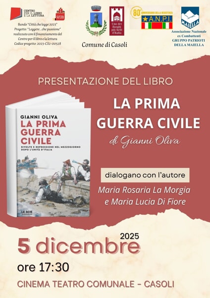 Venerdì 5 dicembre, alle ore 17.30, al cinema teatro comunale di Casoli, c’è la presentazione di “La prima guerra civile”, il volume dello storico e giornalista Gianni Oliva.
