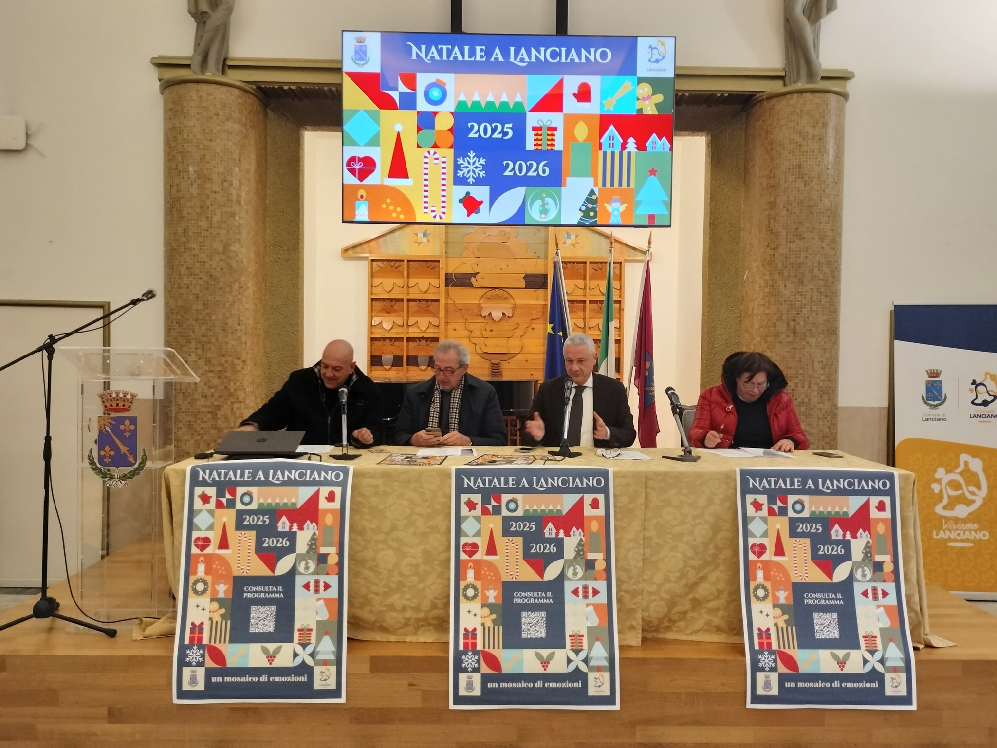 Sono oltre sessanta gli eventi che caratterizzano il programma di “Natale a Lanciano 2025-2026”, presentato stamattina in conferenza stampa dall’Amministrazione Comunale presso il Salone d’Onore “Benito Lanci”, nella ex Casa di Conversazione. Sono intervenuti il Sindaco di Lanciano Filippo Paolini, l’Assessore alla Cultura Danilo Ranieri, l’Assessore al Commercio Maria Ida Troilo e il Consigliere delegato ai grandi eventi Fernando De Rentiis.